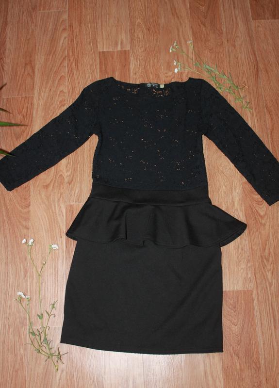 Дівчатка уявляю Вашій увазі чорне кокетливе сукні з басками. Верх виконаний з щільного мережива. Дуже елегантне, Ви будете королевою вечора. Ідеально підійде на осінь - весну, плаття щільне, тепленьке) Рукав три чверті. Одягалось два рази. Розмір S. Мій зріст 163 см - сидить відмінно) Якість відмінна.