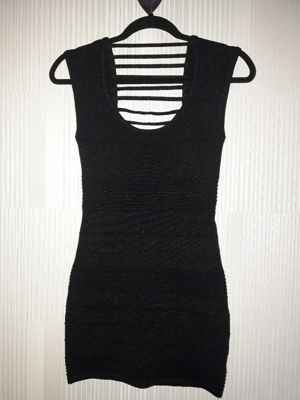 Розвантажують свою шафу.... Коротеньке бандажну чорне плаття, з люриксовой ниткою...З интерестной відкритою спинкою... Ошатно виглядає, на худеньку дівчину... Розмір S, але можна і на XS.. ПІТ - 31см, довжина 76см, тканина тягнеться....Відповім на питання, що цікавлять вас, дивіться мої інші оголошення... Одягала один раз, стан нового....