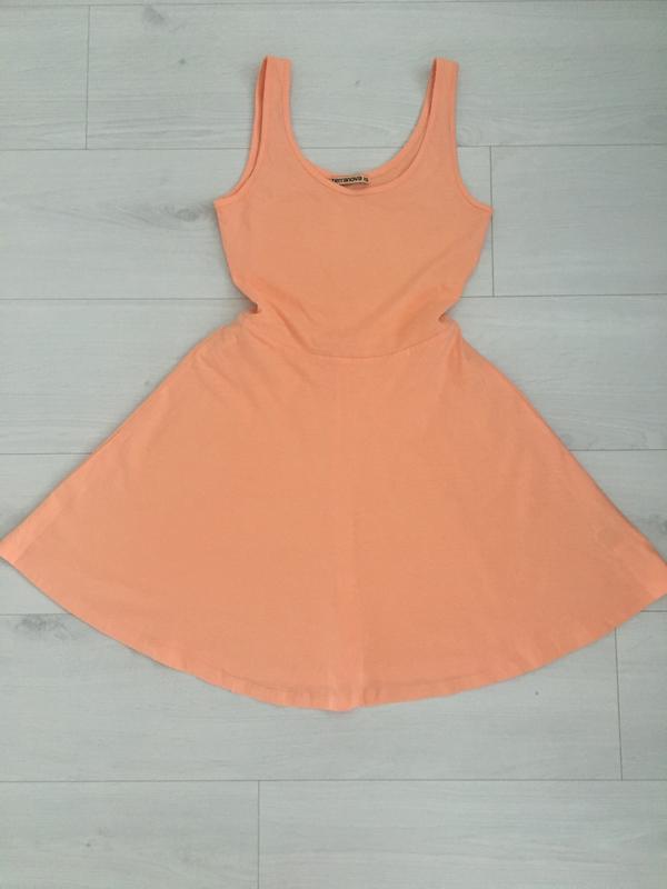 Легке літнє плаття ніжно-персикового кольору , підійде як і під кеди і сандалі . В шкарпетці не було