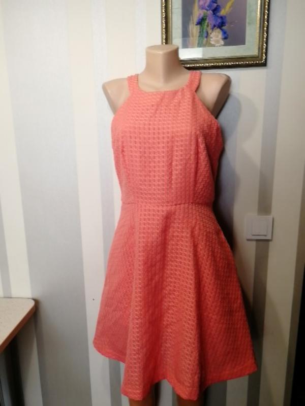 Яркое, красивое платье размер 40(12). Сзади длинная, золотая молния, есть карманы. Состав верх полиэстер, подкладка катон.