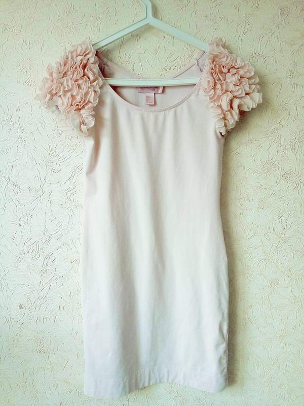 Бледно розовое трикотажное платье. Эластичный трикотаж, оригинальная отделка рукавчика Подходит на s,m Состав: Хлопок