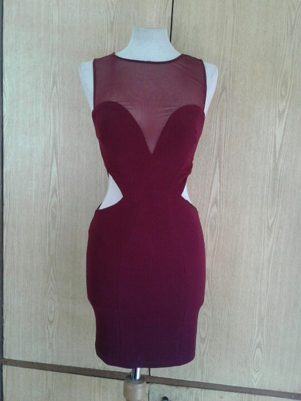 Стрейчевая сетка с дырочкой на плече. Платье на трикотажной подкладке. На спине молния. Размер - S/ 8. Замеры :ПОГ -37-46см, ПОТ - 33-40см, ПОБ -35-43см, ДИ - 89см. Бренд - FOREVER 21.