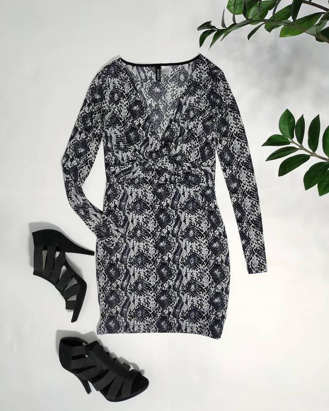 ❤️платье в змеиный принт по фигуре, красивый переплет на груди, длинный рукав, тянется отлично ☑️ Размер- 10 Пог 41-42, пот 36, поб 44, длина по спинке 80, рукав 58 ☑️ Бренд- h&m ☑️ Состояние- идеальное
