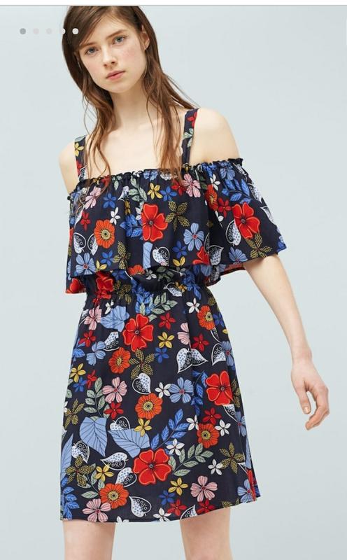 Романтичное, легкое, летнее, яркое и это всё про это платье. Платье с воланами и со спущенными плечами. Талия на резинке, длина мини На спинке вырез и волны закрываются на одну пуговицу сзади. БРЕТЕЛЕЙ от платья НЕТУ!! Длина изделия 72 см Погруди 43 см (но там резинка возможно +7+6см) ПолуобхватТалии 31 см(резинка +6+7) Платье идеально для жары!!