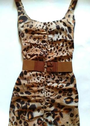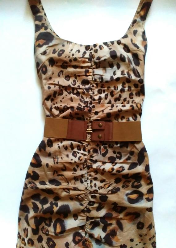 Очень крутое и актуальное на сегодняшний день платье с анималистическим принтом. Платье мини,по всей длине спереди идёт сборочка,которая скрывает несовершенства фигуры ( если они есть))) Платье в обтяжку,пояс очень выгодно подчеркивает талию,при желании его можно отпороть,чтоб носить в разных вариациях. Состояние идеальное,так как надевала его очень редко.