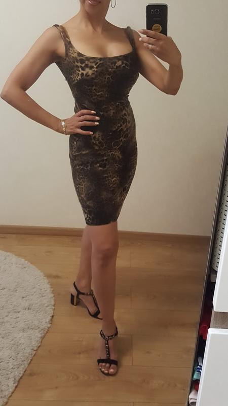 Стильное платье, леопардовый принт, размер s-m Очень качественный плотный трикотаж, расцветка скрывает все недостатки фигуры. Красивый вырез в области декольте. Полуоткрыта спинка ровно столько, чтобы прикрывать белье. Очень приятное к телу, хорошо тянется, Одето на 92-70-93.