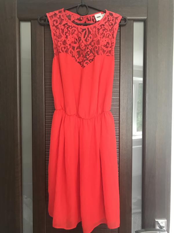 Дуже класне, насиченого червоного кольору, легке, є підклалка, відкрита спинка, розмір вказано 36/8, нове, бірка лише знизу, на фото видно