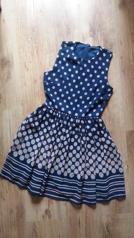 Синє плаття в чорний горошок. Бренд - Atmosphere. На спині є замочок, він працює. Спідниця-кльош, є під'юбник. Сукня не просвічується. На талії резинка.