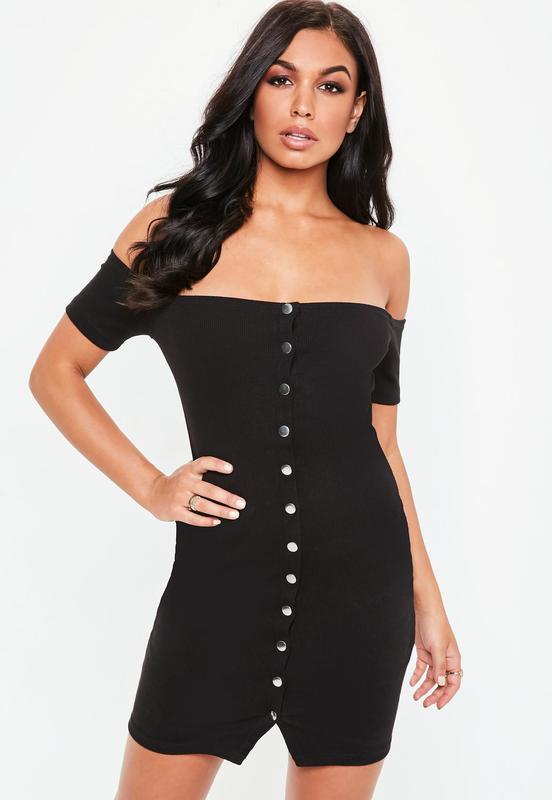 Платье рубчик открытыми плечами мини короткое черное трикотажное обтяжку пуговицах