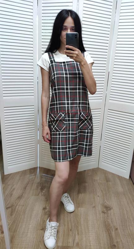 Платье-сарафан в клетку с карманами Redherring, Р-р L/Eur 42/ 14. Ориентируйтесь по замерам. Можно носить с футболкой и без. Без подкладки, сзади на молнии ✔Состояние идеал ✔Состав 65% полиэстр, 35% вискоза ✔Пог 46 см ✔Пот 47 см ✔Поб 52 см ✔Длина 86 см. Одето на параметры: Рост 1,63 см, 80-65-87