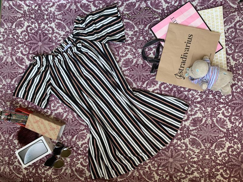 Легке та вільне плаття на літо. Є в трьох розмірах xs, s, m. Можна носити із спущеними плечима або ж піднімати. Плаття з чорними, білими та помаранчевими смужками. По обрису декольте є рюші😍. Розмір по довжині: XS - 70 см; S - 75 см; M - 80 см. По об‘єму плаття оверсайз. Підійде, як до босоніжок, так і до підборів☺️.