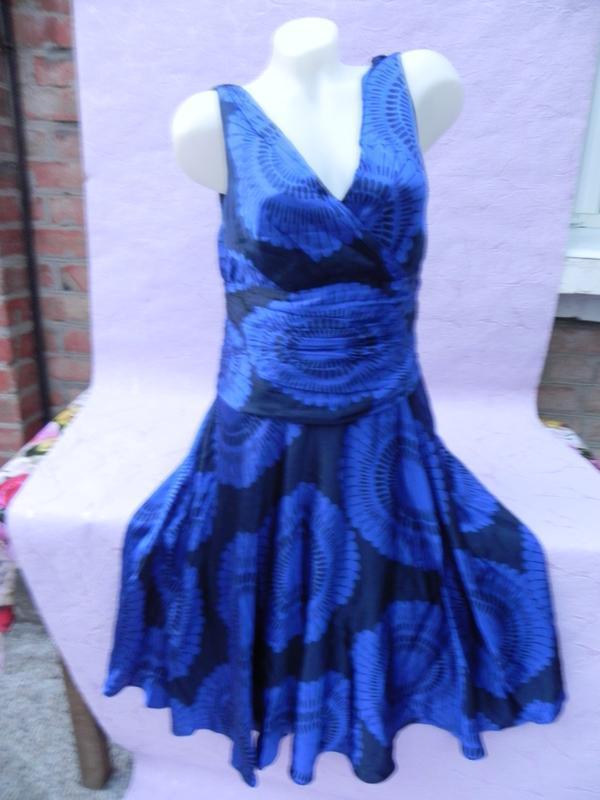 Ширина между подмышек - 48см, пояс широкий на талии 41см, от талии расширяется клещем и бедрах уже свободненько до 70см, длина от плеча -110см, сбоку на замочке