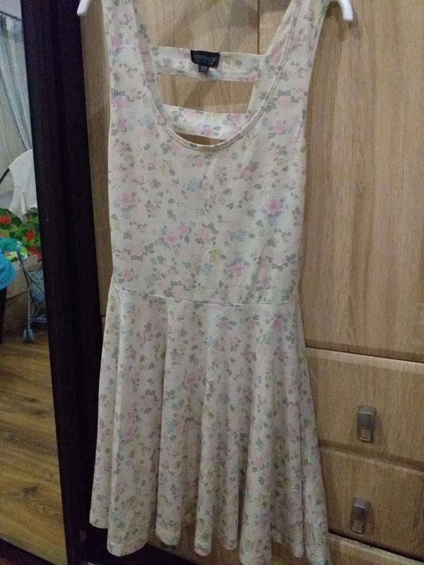 Дуже красиве плаття на літо, на бретелі з красивою спинкою, низ розкльошований ,колір молочний з квітами,стан хороший
