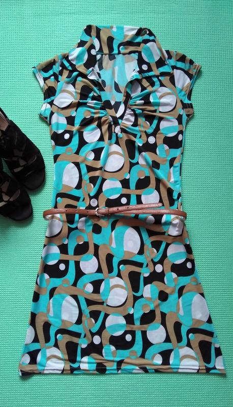 Плаття з яскравим принтом геометрія,розмір С,стан ідеальний,матеріал-мікромасло/поліестер