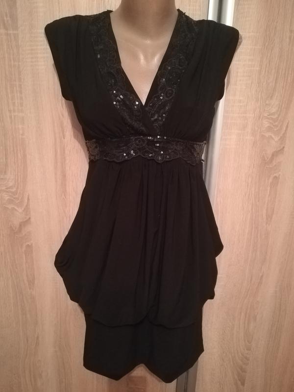 Вечірня сукня з блискітами. Розмір S, але підійде і на М. Довжина від плеча 80см Сукня з великими карманами, які прикриють недолікі фігури. Знизу невеличкий манжет.(на фото видно) Зі спини є невеличкий виріз + зав"язується на поясі.(на фото видно бантик) Додаткові заміри скину - запитуйте.