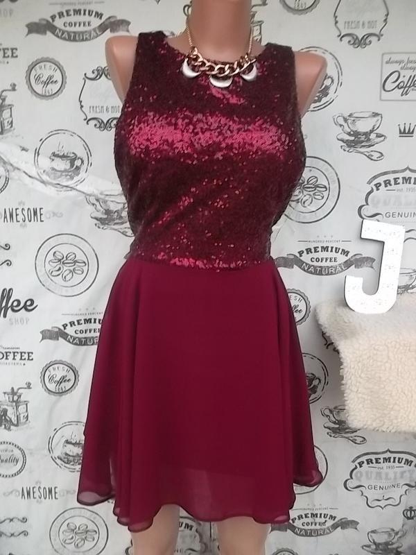 Продаю очень красивое платье. Цвета марсала. Юбка- шифон. Топ обшит паетками. Оригинальные, приоткрытые плечики. Новое, с бумажной биркой. размер указан 12-40-38 наш 46 ориентируйтесь на замеры: длина-83 см по груди-45 см по талии-37 см по бедрам-73 см Очень крутое о покупке не пожалеете)))