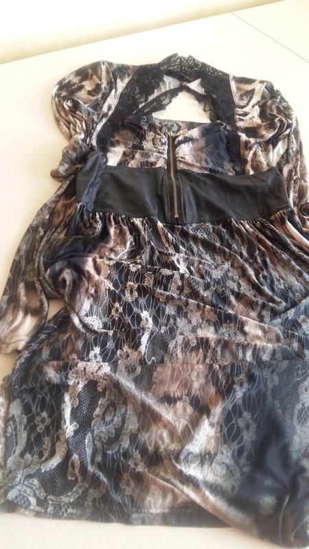 красиве плаття яке може бути як міні так і міді з шкіряною вставочкою на талії і гепюр чином на грудях і спині