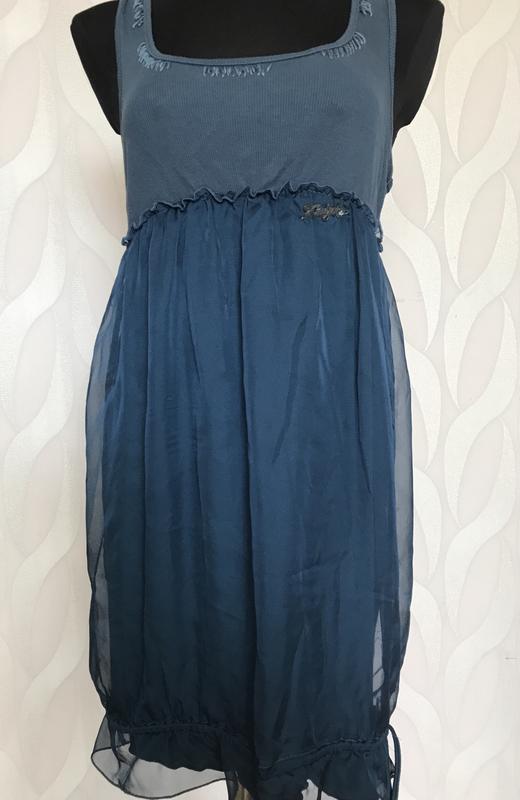 Платье khujo в идеальном состоянии, одето один раз. Верх вискоза, юбка шифон, подкладка хлопок. Тянется. Пог 37, поб 45, длина 80.