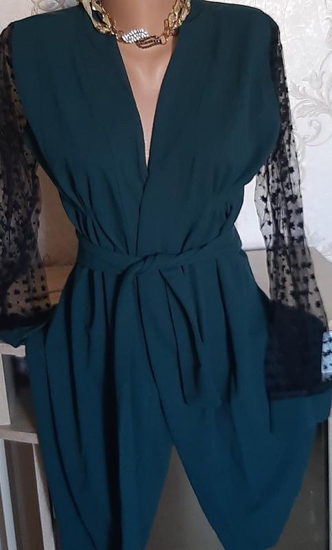 с поясом, можно носить с поясом на запах, можно носить не застегивая как кардиган, можно носить на красивой булавке (брошке), новое. Очень сексуальное. Длина до колена.