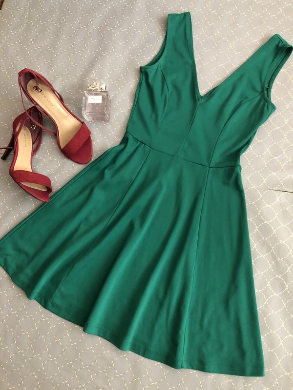 Летнее платье зеленого напитанного цвета, с v-вырезом горловины. Размер на наборе хс, однако идет на с. Длина - 85см.