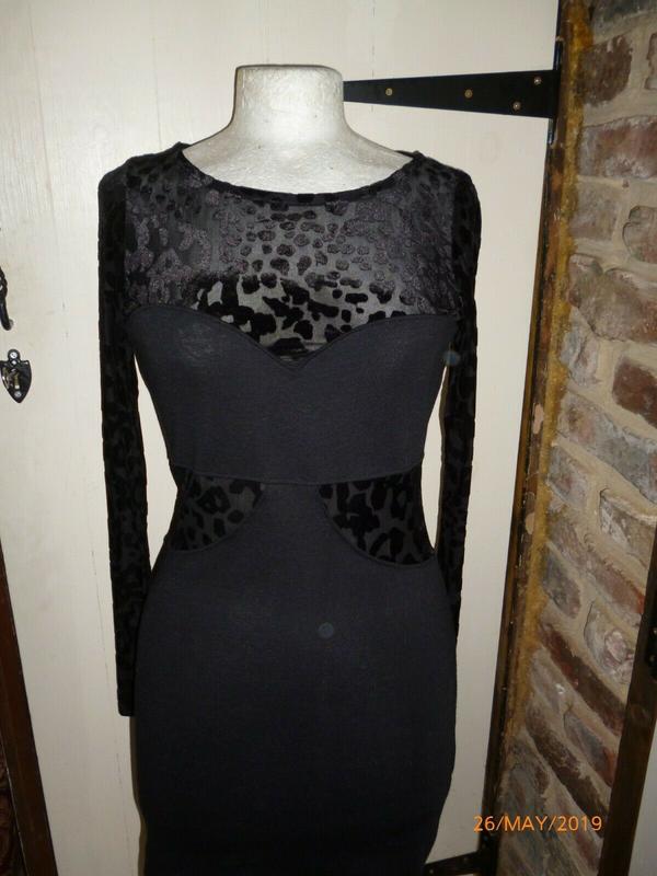 платье тёмно-синего цвета рукава сетка и бархатный леопардовый принт. р.10/38