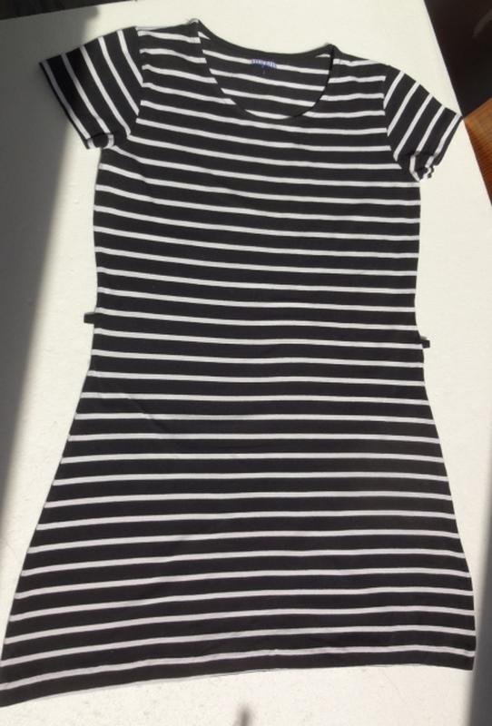 Отличное полосатое платье. Ткань трикотаж. Тонкое, но плотное. Новое, без бирки, без нюансов. На талии есть 2 петельки для поясочка. Сам пояс отсутствует. Замеры: плечи 35 см под мышками 43 см талия 40 см бёдра 49 см низ 58 см длина 79 см
