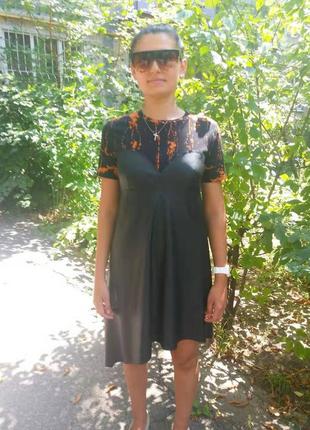 Очень стильное платье от Zara, ткань с элементами кожи, размер L
