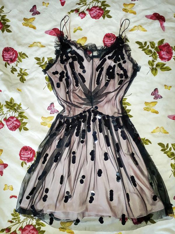 красивое и нежное платье на выход. подкладка нежно жемчужно-розового цвета. верх - мягкий фатин и пайетки. пошито на заказ.