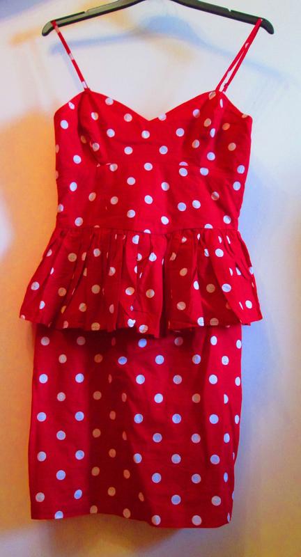 Очень красивое стильное платье ginatricot красное в горошек котон с баской размер s