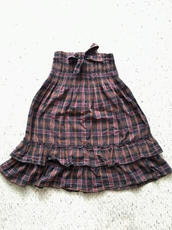 Легка сукня в клітинку з тонкої простої тканини без бретель. Стан хороший.