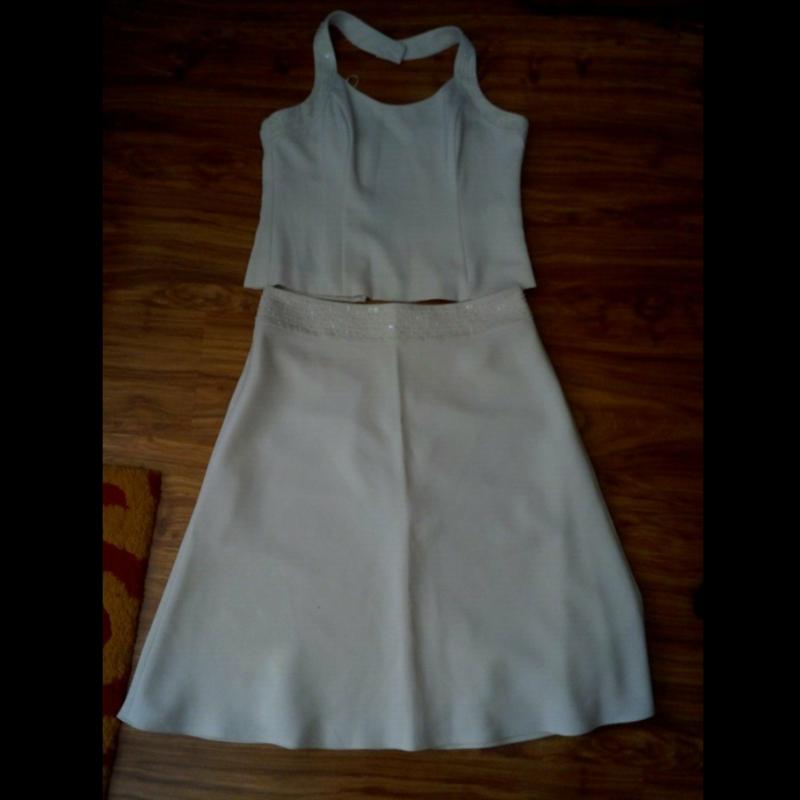 Продам платье раздельное next. Длина 59, поб 42, пог 45, юбка топ. Беж. На подкладке. Вышитое бисером