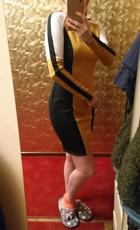 сукня, розмір 44 або М, приталене, відмінно сідати по фігурі, за рахунок чорних боків, стрункий. колір: чорний/кремовий/гірчичний дефектів немає, одягнене 3 рази
