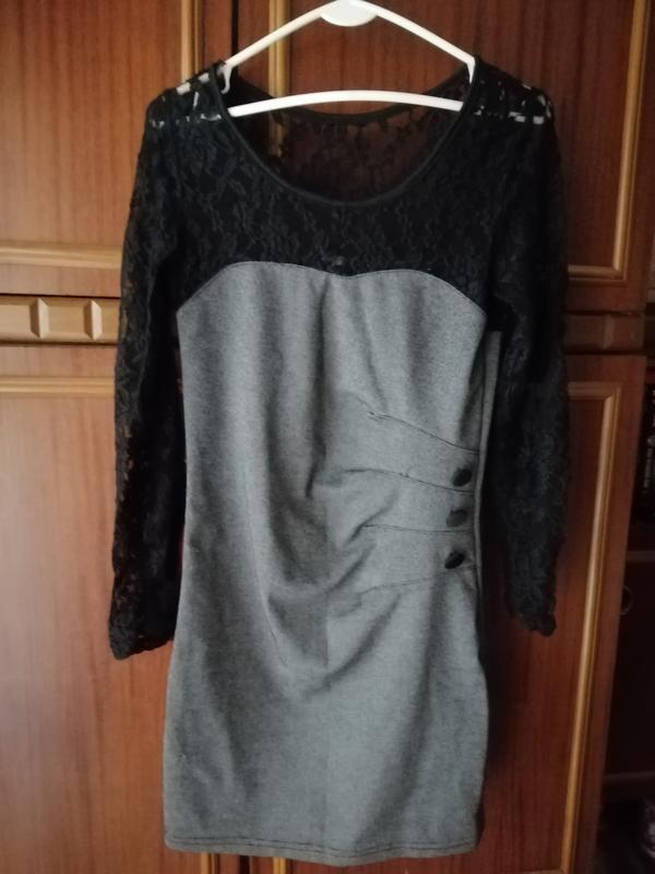 Сукня коротка, верх мереживний, 3 гудзики збоку. Довжина 80 див.,талия35 тягнеться добре.