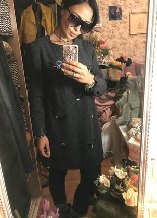 Стильное платье-туника.. Красивого и актуального цвета.. Модного фасона..трапеция.. Впереди расшито бусинками..бисером.. Застегивается на спинке на тонкой молнии.. Идет на размер 44-46...M-L мерки: Плечи 38см ПО по пройме 50см ПО по талии 52см ПО по бедру 57см Длина рукава 62см Длина изделия 80см Отличного качества, тепленькое.. Хорошо сидит по фигуре.. Красиво под джинсы,лосины,брючки..колготочки.. Смотрится оригинально и актуально..