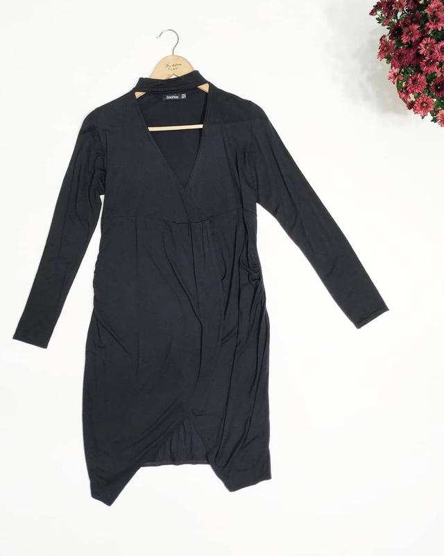 ❤️ трикотажное платье с чокером, запах, есть выточки на животике, можно для беременных ☑️ Размер- 10 Пог 43-45, пот 40, поб 49, длина от плеча 88, спереди самое короткое место 69, рукав 59 ☑️ Бренд- boohoo ☑️ Состояние- идеальное Фото на теле не делаю!!!