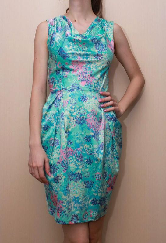 Размер M-S Платье в отличном состоянии из легкой ткани, внешне похожа на атлас. На спинке молния, на талии сзади поясок. Дефектов нет