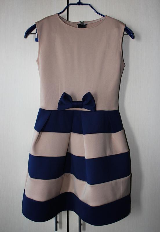 Размер S Платье в отличном состоянии, юбка держит форму, застегивается змейкой на спине, одето пару раз, дефектов нет