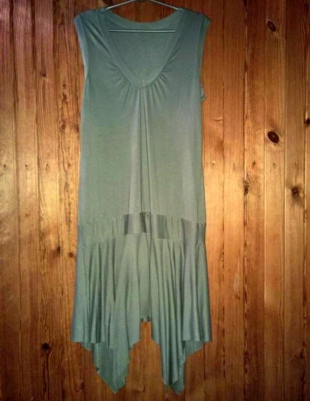 size M-L Гарне, екстраваганте 👗 з м'якого трикотажу ФІСТАШКОВОГО кольо- ру. V-образний виріз горловини. 👉 Відтінок на фото може відрізня- тися від реального з-за особливос -тей кольору передачі. ❗Бирки про состав та розмір відсутні. Імовірно, віскоза 50% полиэстер 50%. 👇 Обов'язково ДО покупки звірте заміри: Довжина до самого довгого краю низу 120 см Довжина до самого короткого краю низу 95 см ПОГ 46 см ПОТ 46 см ПОБ 46-48 см 🙂 З нетерпінням чекаю у мене на сторінці. Бажаю вдалих покупок і супер настрою.