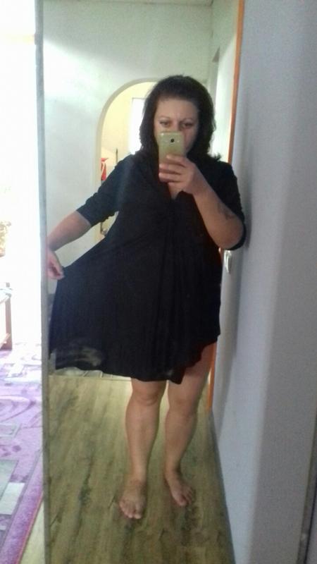 Дуже цікаве плаття туніка, на фото показала як виглядає. загальна довжина з одного боку 92, з іншого 70, пог вільний. плечі 41, рукав 51. Піт і побіди вільний. іде як оверсайз. матеріал Дуже приємний до тіла. фото дефекту вказала. Це фабричний, бо плаття не ношене, можна легко замалювати .