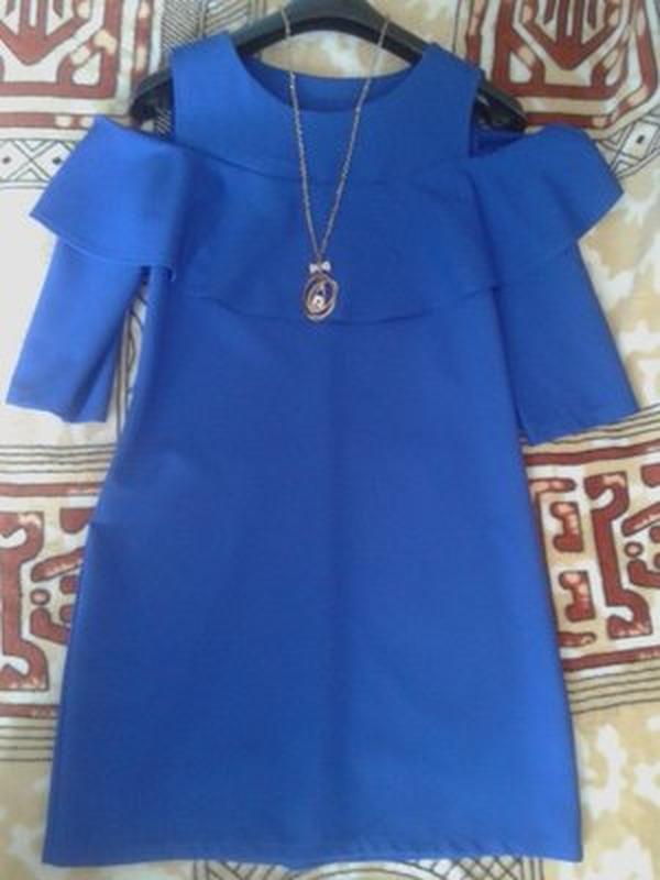 Платье женское с вырезами на плечах,рукав 3/4. Размер М. Цвет синий "электрик". В отличном состоянии.