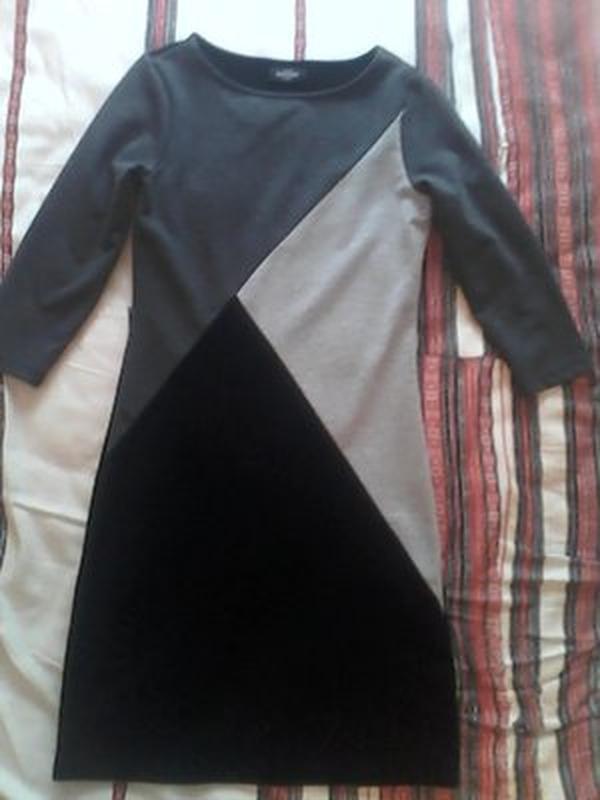 Сукня з щільного трикотажу, розмір 46-48. Рукав 3\4. Склад тканини: 70% віскоза, 26% поліестер, 4% еластан. У відмінному стані. Без дефектів.