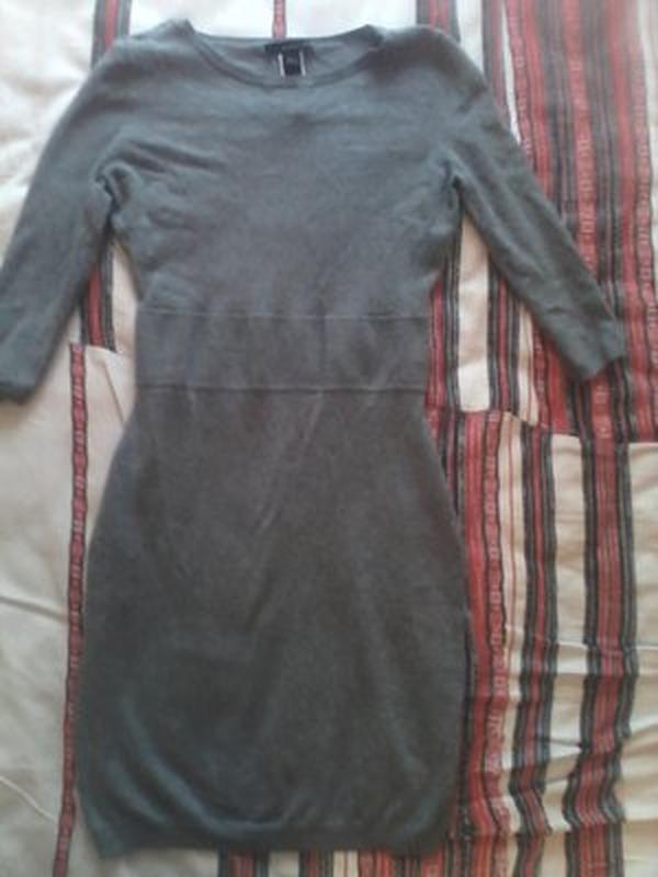 Платье стрейчевое, мелкая машинная вязка, светло-серого цвета, рукав 3\4, размер 46-48, в отличном состоянии, без дефектов. Состав ткани: 40% хлопок, 40% вискоза, 15% полиамид, 5% эластан.