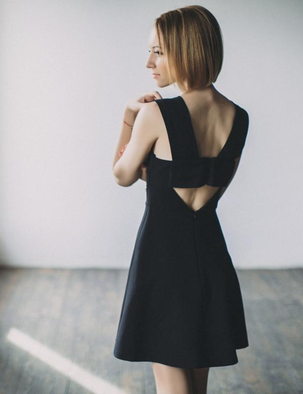 Чёрное короткое платье из неопрена. Ткань плотная, хорошо держит форму и не мнётся. Самое интересное - сзади: своеобразный крест. Размер Xs, но я надевала и когда поправилась, сейчас у меня S. Ткань тянется, поэтому и получилось влезть. Надела один раз на фотосессию. Очень интересно смотрится с белыми кроссовками или кедами. Состояние идеальное, если нужно, отправлю больше фото.