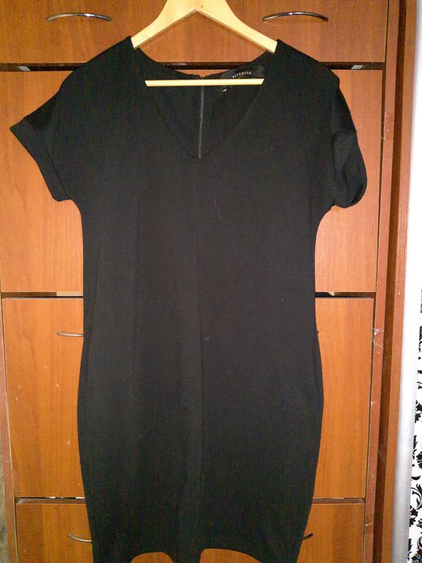 Повсякденне, зручне плаття чорного кольору. Тканина тягнеться, не тонка, тепле, ззаду замок по всій довжині, робочий. Без дефектів, плям і т.д. При потребі заміри надам.