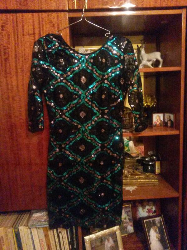 Нарядне плаття.Довжина 82 см.Ззаді невеликий виріз.Дуже гарне.На розмір s-m.Єдине сиплються паєтки.