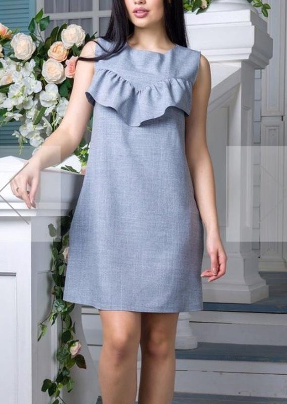 Серое платье трапеция. Размер указан Л, но маломерит. По спинке идет молния. По бокам есть боковые карманы. Длина 87 см ПОГ 43 см в районе бедер 50 см по низу 58 см