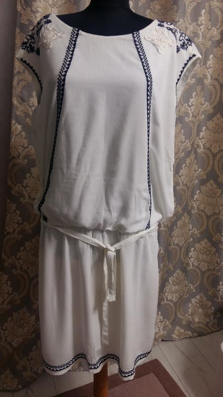 Женское платье, на подкладе, в стиле "Этно" цвет: молоко, декорированное вышивкой, ПОг - 60 см, ПОт - 51 см, ПОб - 62, Дизд - 104