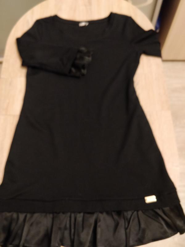 Маленькое чёрное платье на все случаи . Плотный трикотаж , низ платья и низ рукавов украшен шелковой оборкой. Покупалось в брендовом магазине .
