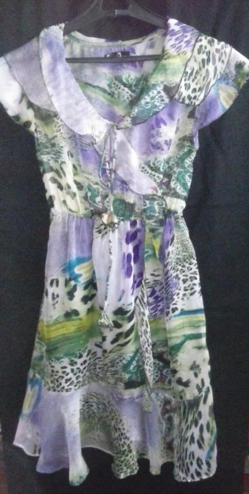 Платье летящего силуэта. Вшит подъюбник. Длина - 88 см. Возможен обмен.