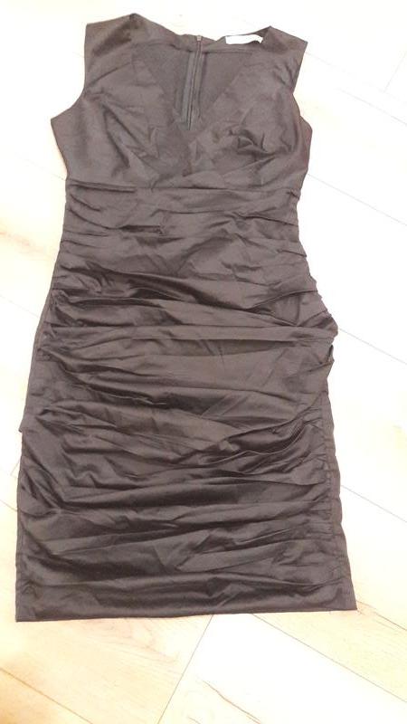 Платье футляр,сидит по фигуре.Ткань плотний атлас.Размер С-М.